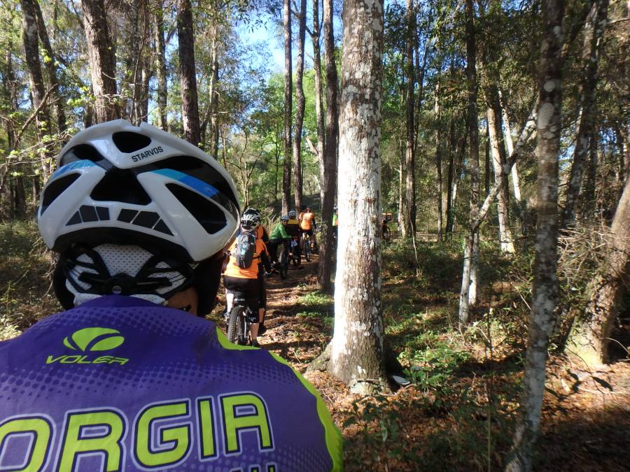 The yellow group at the famous Santos Land Bridge. Single track riding is not anything we had ever done before.