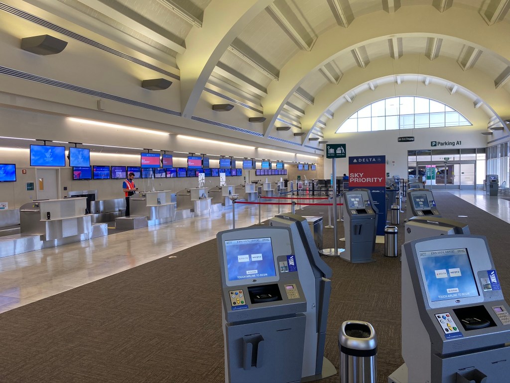 11:05AM: Check in bags with Delta. The guy at the counter tells us that Delta only has 2 flights per day from SNA right now.