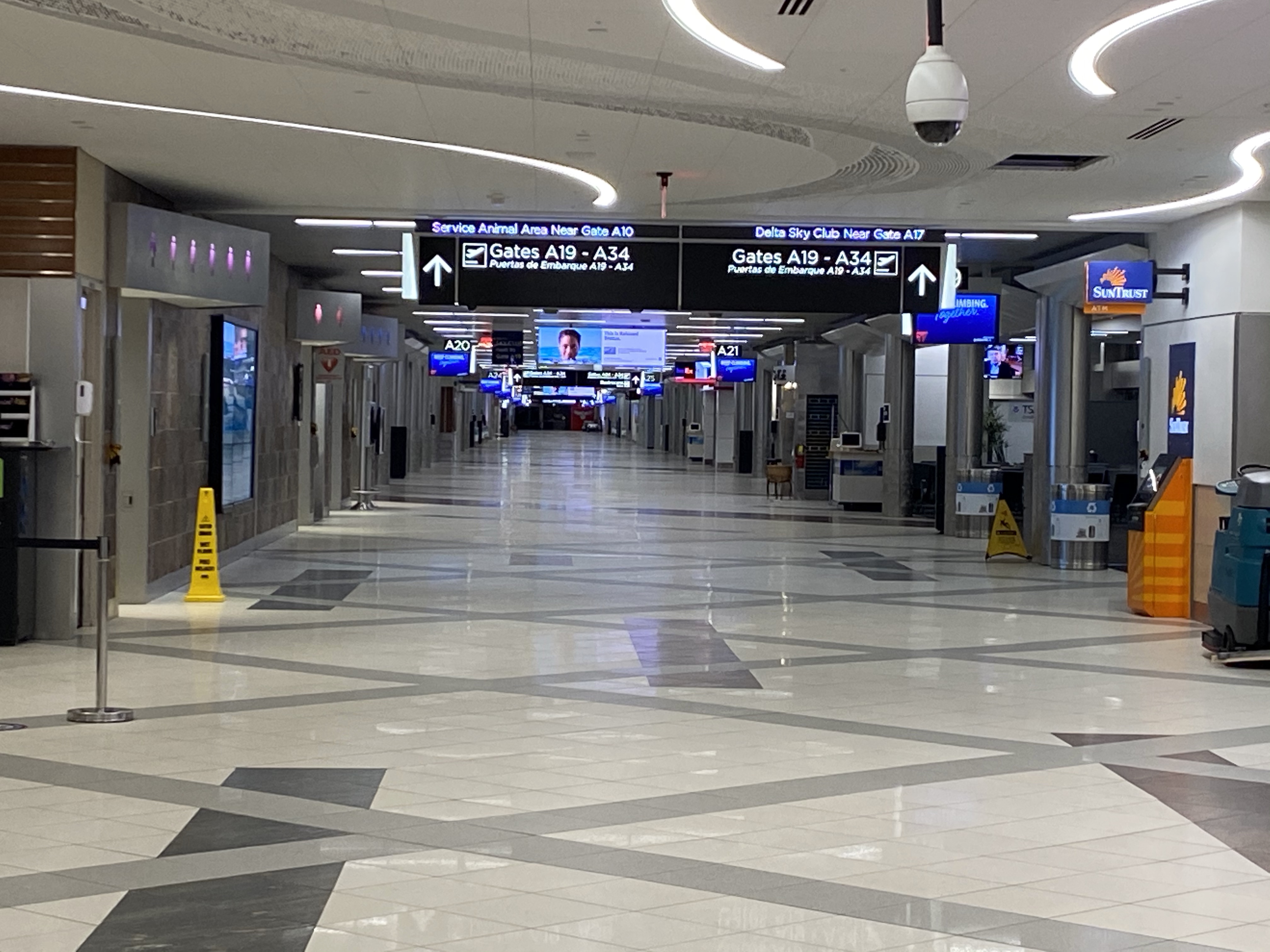 10:30PM (EDT): Our plane lands, 30 minutes early. It’s the last Delta flight of the day. The airport is empty.