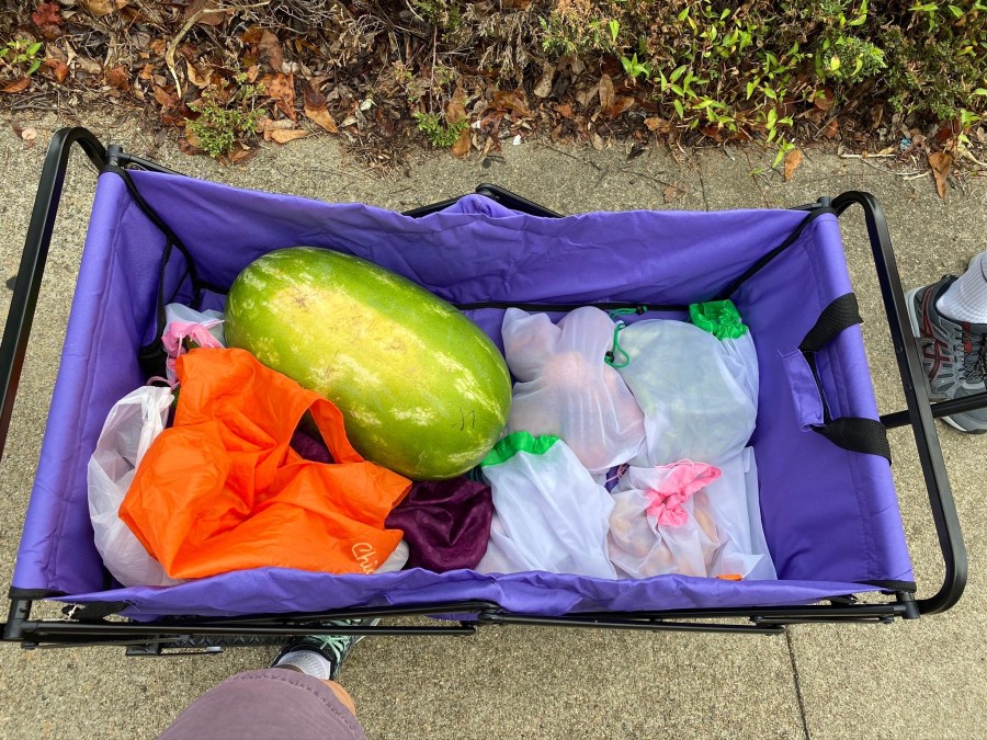 Here is the haul from a recent trip to the farmer’s market. And yes, I DO have a purple wagon!