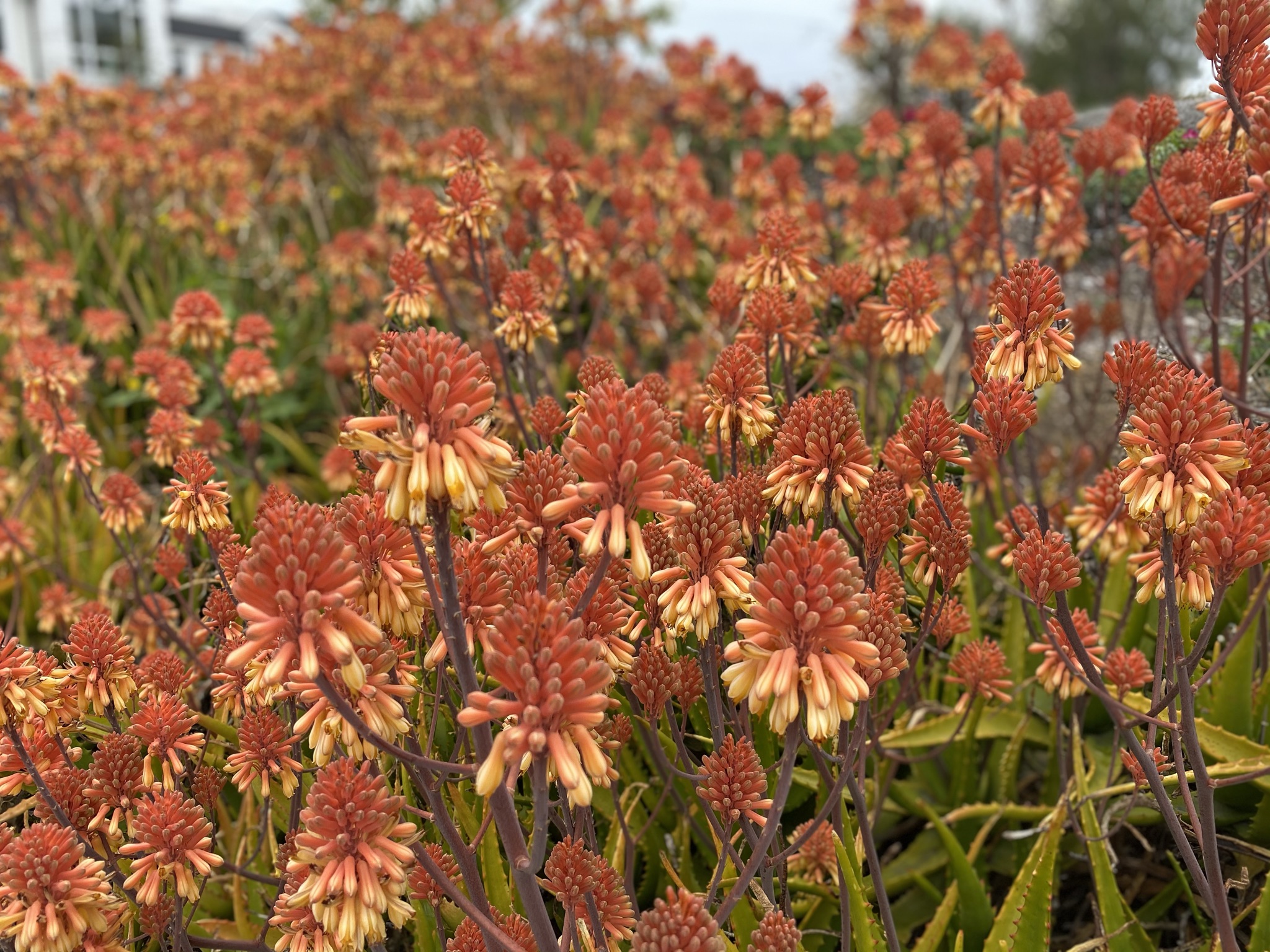 The flowers from aloe-like succulents