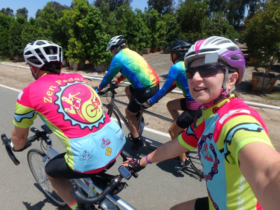 We missed our monthly tandem club ride for May, but we were able to participate in a group ride with a new-ish (and still forming) SoCal group. Five couples met in Irvine and enjoyed a 45 mile ride that Roger created (no surprise). It’s also not surprising that we had a rest stop at Pacific Whey and we shared a dessert.