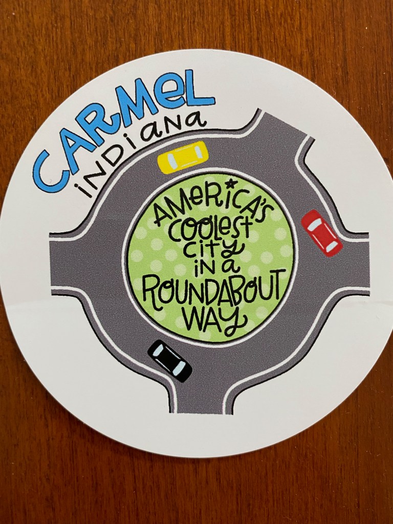 We stayed in Carmel, a northern suburb of Indy. It’s a lovely town built up around the Monon, an outstanding bike trail. And there are quirks: apparently the mayor is a fan of everything European and is the driving force behind replacing almost all of the traffic lights with…traffic circles. Sources tell us there are over 130 roundabouts in town.
