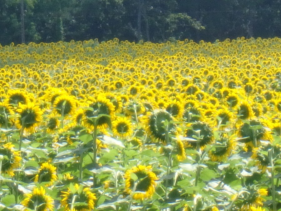 Our ride is 28 miles of rural roads, most unpaved. We do some climbing and we are rewarded with a stunning field of sunflowers for our rest stop.