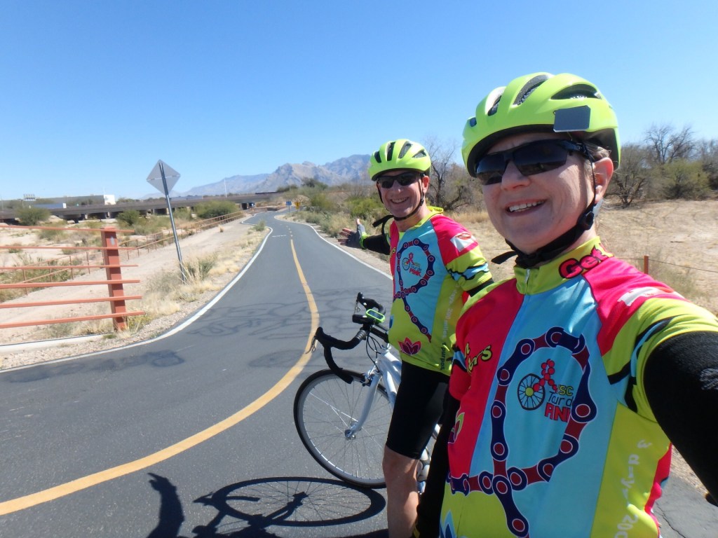 1. Fun to read this upbeat post. Thank you. Great Tucson photos and descriptions, Eve. Jay and I really enjoyed our time with you and Roger- riding on a glorious warm day, lunch at Magpie’s, then the frosting-on-the-cake (actually the homemade apple walnut cake by Mike Bianco was so delicious it needed no frosting) 60th birthday party for your friend Caren Bianco. Great setting, engaging Oro Tandem couples, homemade cake and cookies…