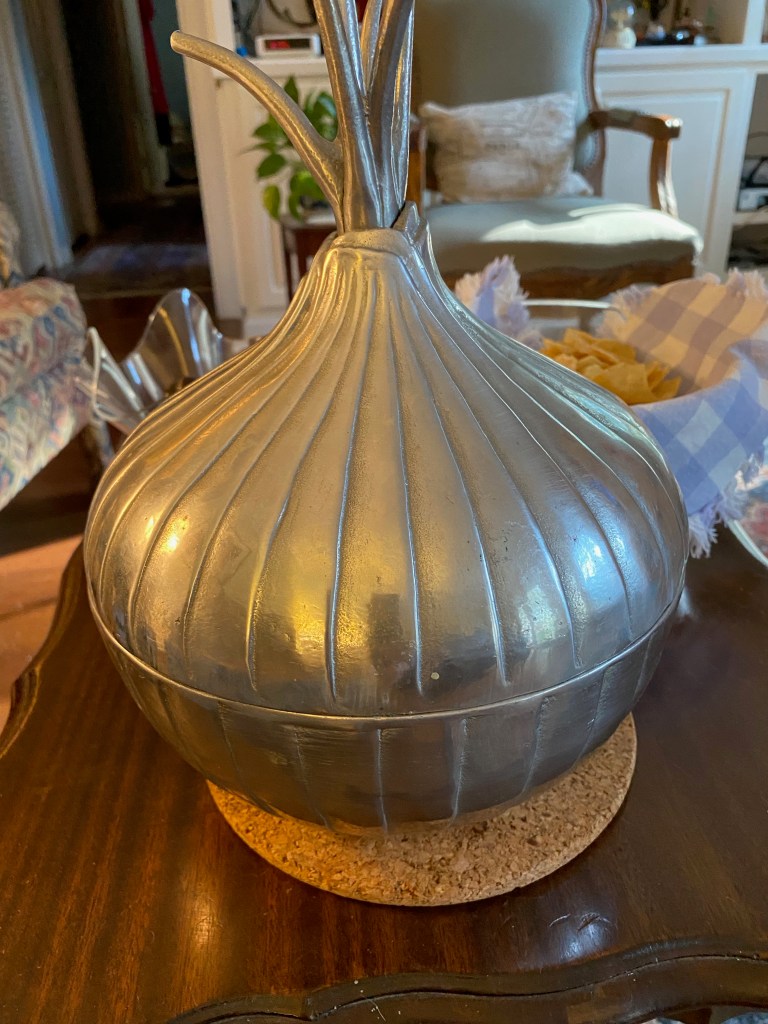 Our first stop in the sweet onion city was with some of the city Elders, Anita and Donald who are lifelong residents. They invited us over for drinks and onion dip. The delicious dip was served in this amazing container.