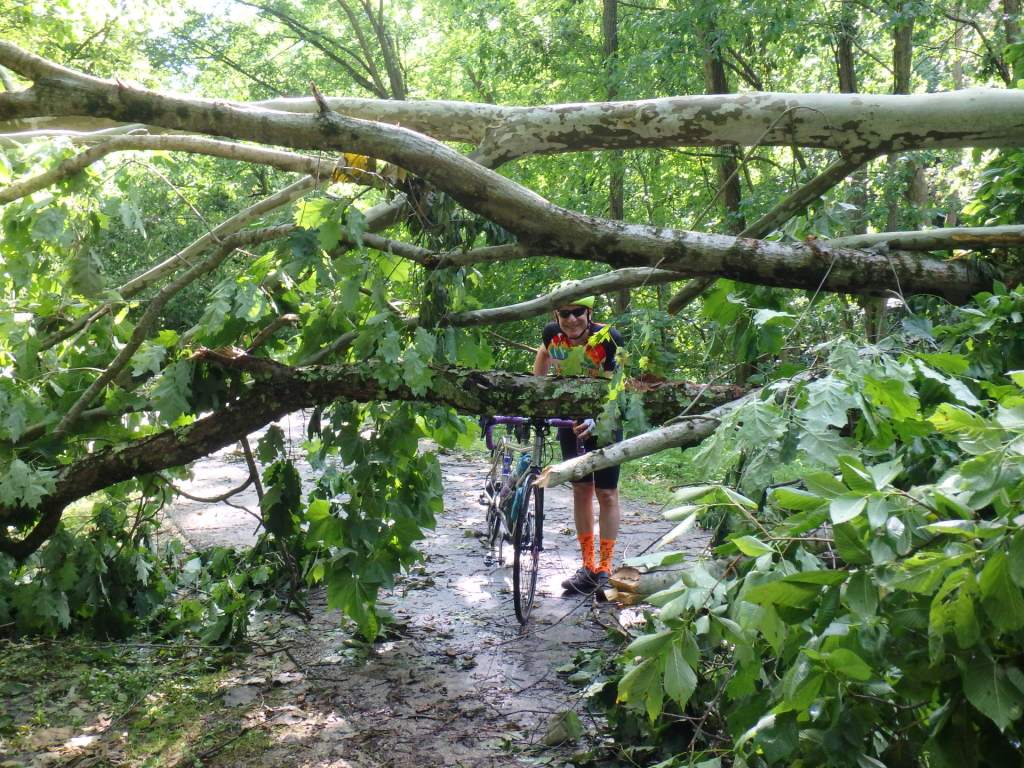 Our first ride was on the Holmes County trail. Parts of the trail were not passable because trees were down, but parts had already been expertly cleaned up with a chain saw and a blower. Anyone got a machete?