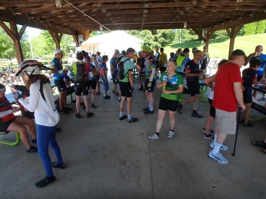 Our busy Saturday started with a delish breakfast buffet followed by a group picture with our new jerseys (designed by Elliott Strauss) and then a sort of mass start.  Many participants had left before the photo as they were worried about the expected temps in the high 80’s.