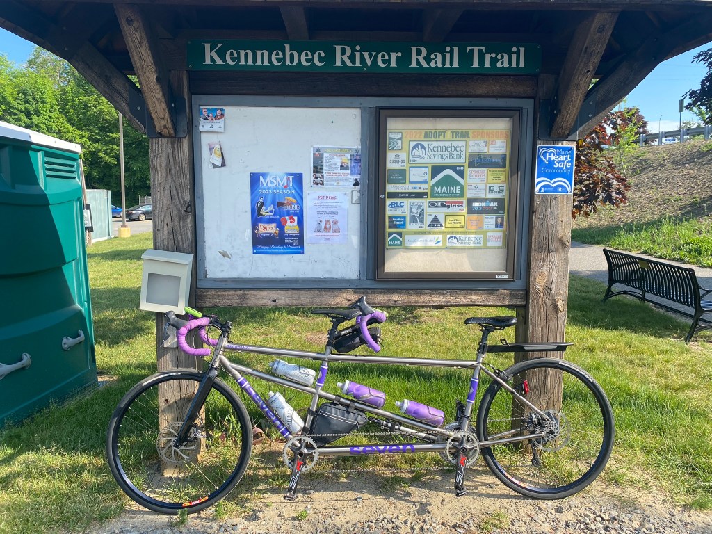 We had plans to ride our bike while in the Oneonta, NY area and we had plans to ride several times on our way farther north and east as we made our way to Prince Edward Island (PEI) in Canada for a 10-day cycling tour with “Adventures In Tandem” (AIT). Instead of enjoying time on the bike, we visited two urgent care facilities, one chiropractor (where I had to go through the whole new patient routine) twice, and I saw two massage therapists. I’m happy to report that the massages, the adjustments and my aggressive stretching routine is working and I’m doing much better. So our six planned rides before the tour turned into one 13-mile ride along the Kennebec River in Augusta (the capitol city), Maine.