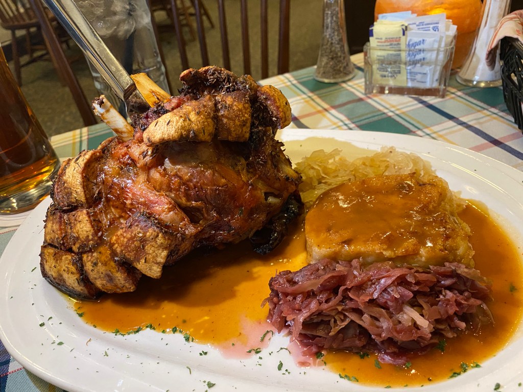 One of our favorite places to eat is in Hagerstown, MD. We often go out of our way to eat German food and drink German beer at Schmankerl Stube. If you can spell it, you can eat there. We split the pork shank, which you must order at least a day in advance.