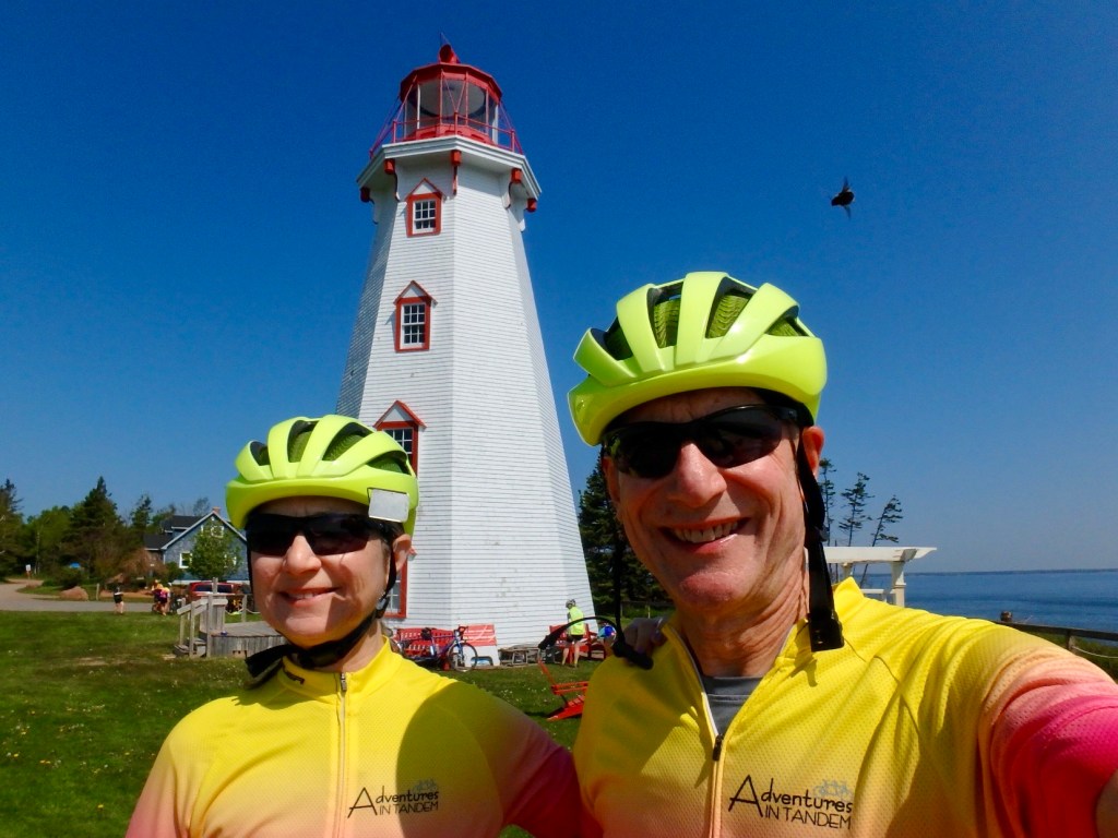 Day seven recap: sunny with lots of smiles! Today we ride with just a few layers, enjoying our 33 miles on the bike and visit a lighthouse looking out on the Gulf of St. Lawrence.