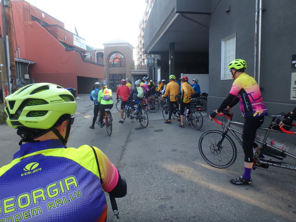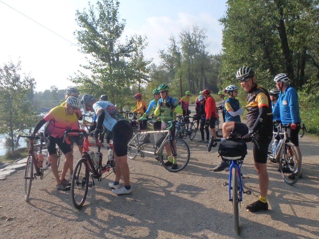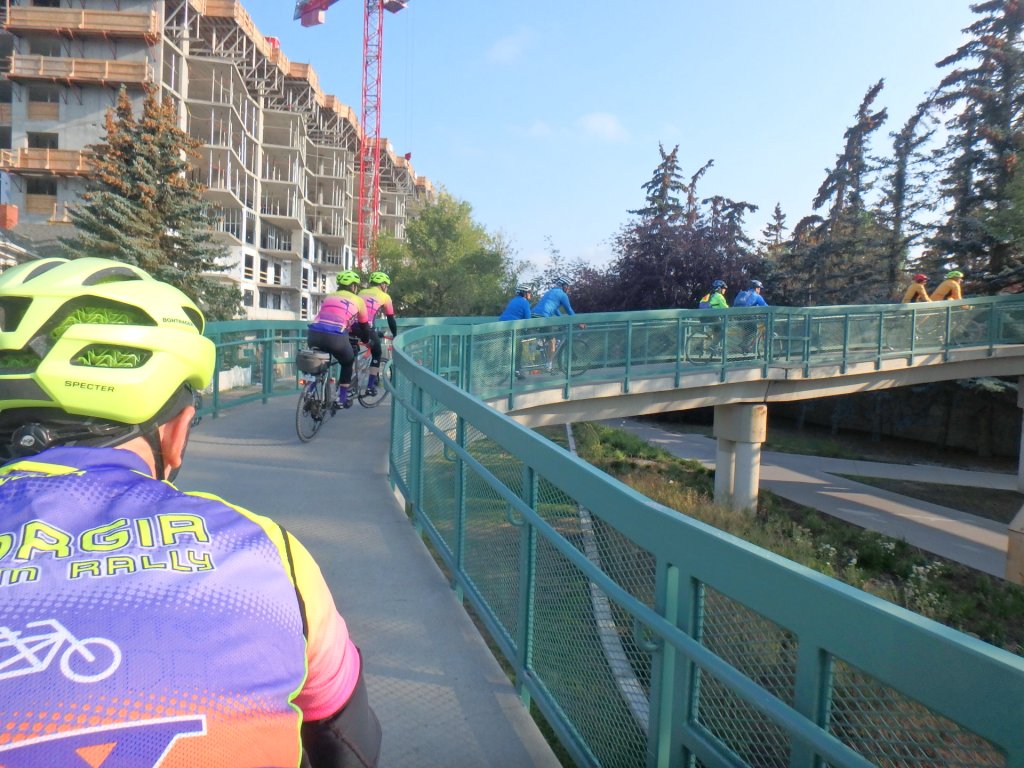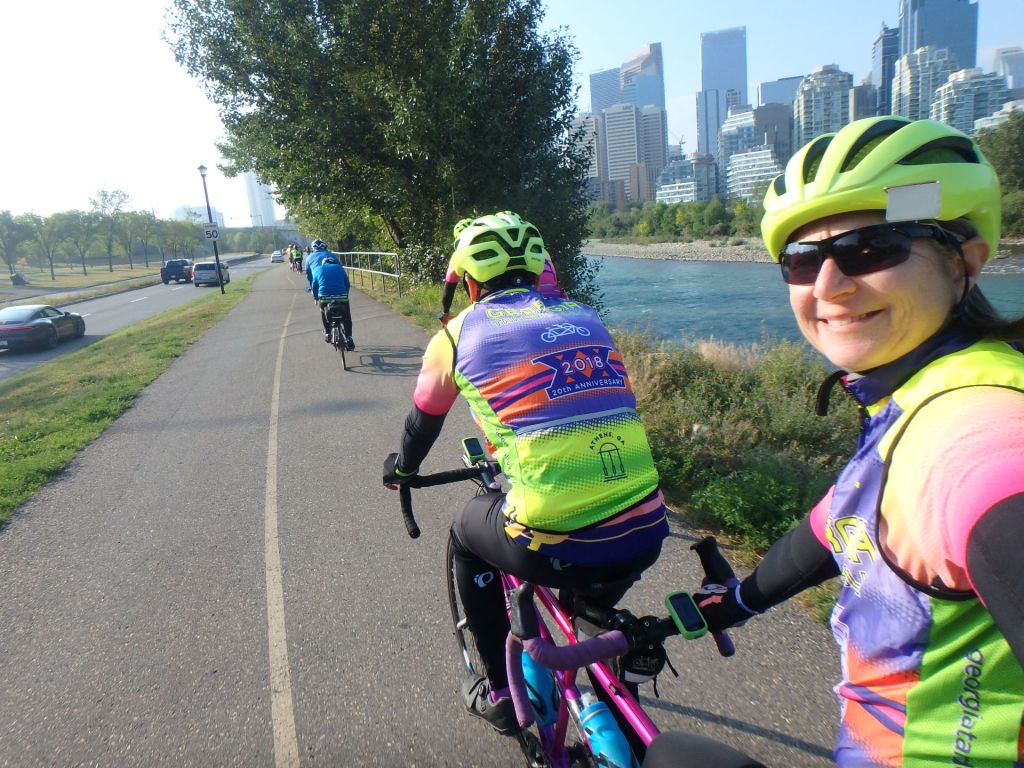 Tour Day One was a meetup of the ten teams in Calgary. A 15-mile ride was scheduled for 2pm. We thought it would be sort of a shakedown ride for those who has just put their tandems together. It was more of challenge than we expected with some serious climbing right out of the gate!
