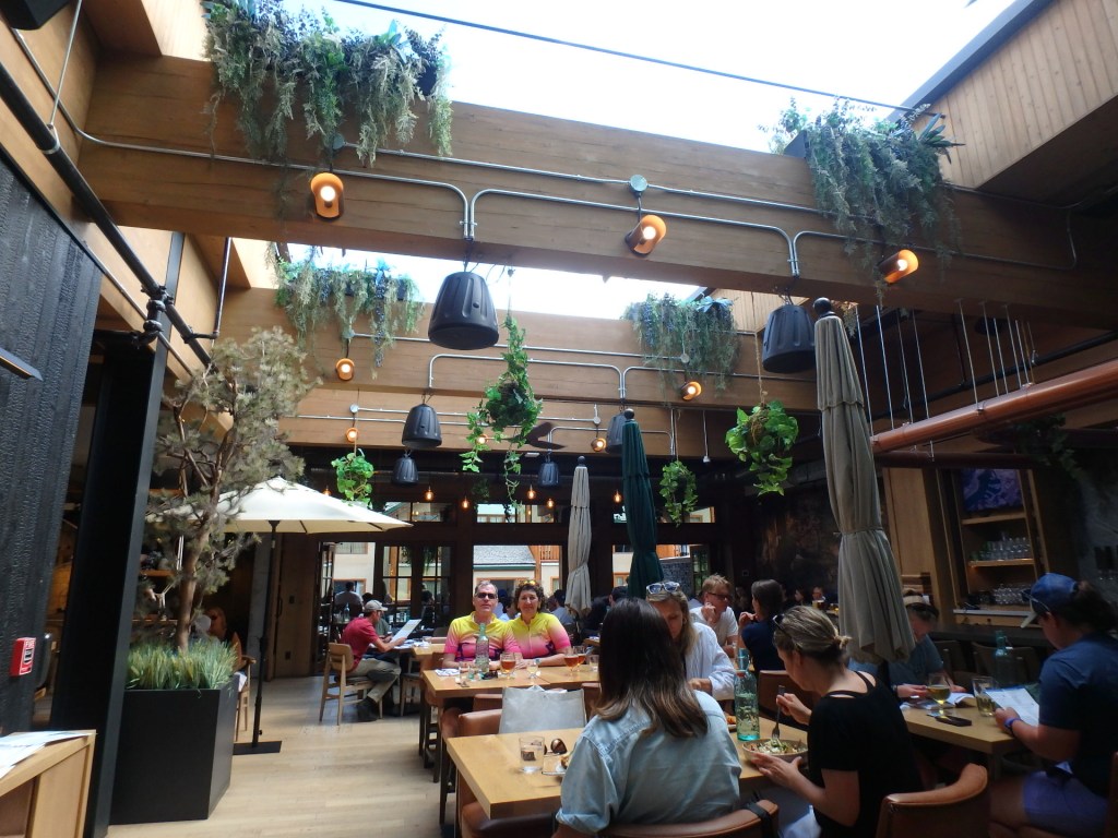 On Day Three we were on the move to Banff – a place that was long on our bucket list. It did not disappoint. We enjoyed a fun ride and a lunch at the Three Bears Brewery, where they have a retractable roof which they open when weather allows.