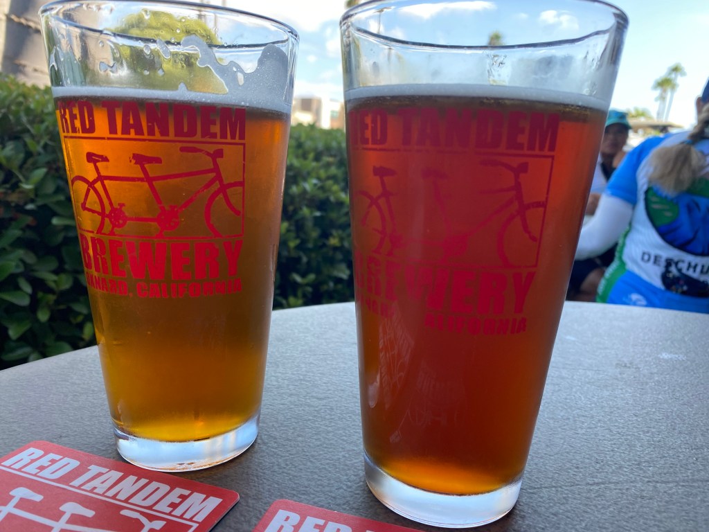 Following the ride, there are no alligator lizards in the air (anyone get the band America reference?) as some of the group meet up at the Red Tandem Brewery (in Oxnard) for pizza and beer.