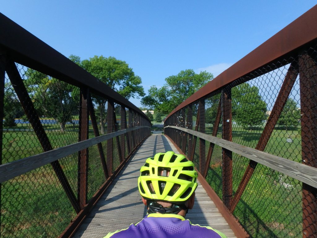 It was chilly and kind of rainy when we arrived in South Dakota. It was also cool the next morning when we went riding, but fortunately the rain had cleared and it wasn’t wet as we navigated the Sioux Falls Greenway system.