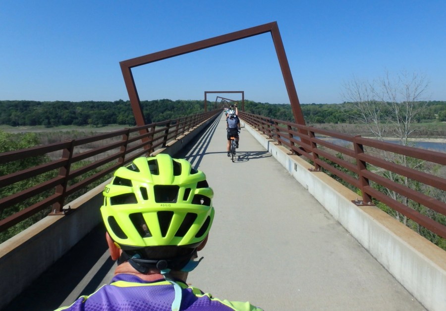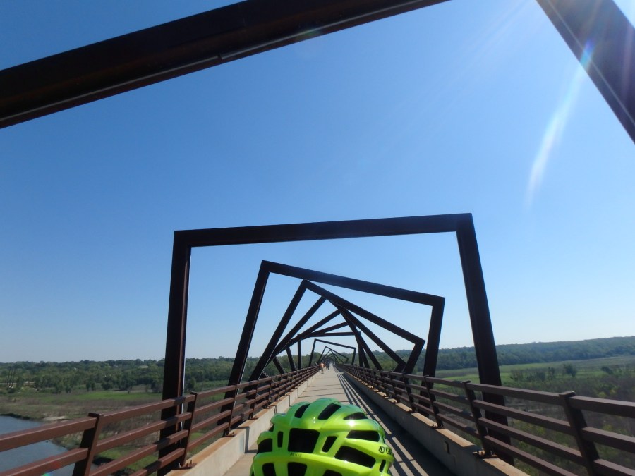 The third ride featured the high trestle bridge (13 stories up) over the Des Moines River, a rare visit with L. Michelle and Jeff (we usually ride on the same roads – but never “with” them) and a post-ride brewery visit.