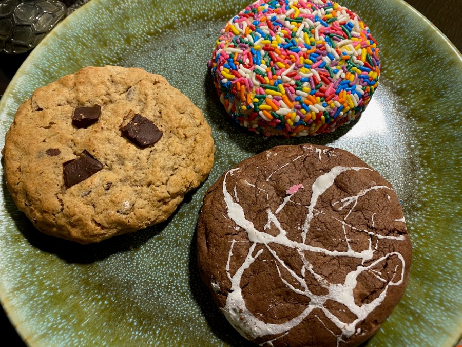 The trip started with a birthday celebration 🥳. Roger had birthday donuts, a delectable birthday dinner at The Side Door, and a delivery of birthday cookies from the Cookie Lab.