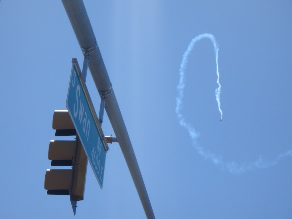 Okay, it’s very hard to photograph stunt planes…I tried my best. It was a long, hot day and we couldn’t stay to see the Thunderbirds perform, but we did see them practicing over the skies of Tucson the previous day while we rode to the mission.