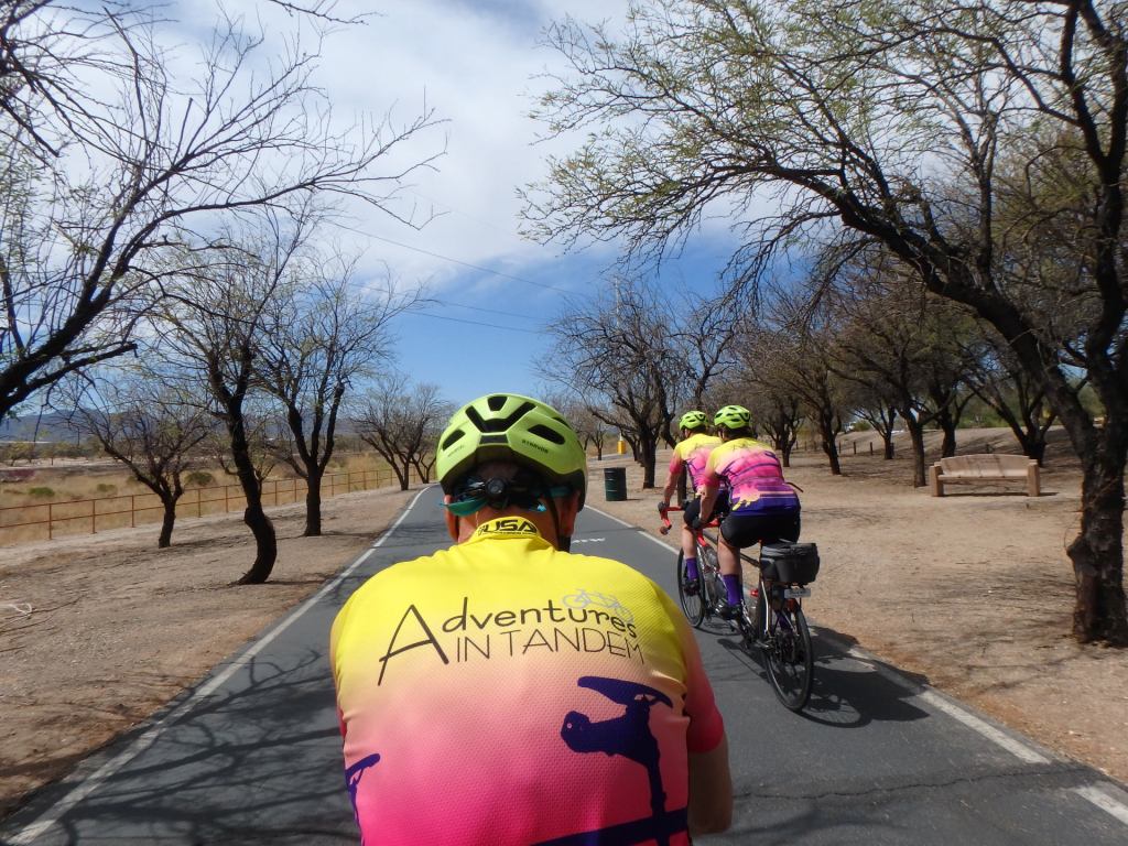 Tucson residents Mike and Caren organized an Oro Valley Tandem club ride (and pot luck dinner) to celebrate Caren’s Birthday. Due to logistical issues we met the group enroute and missed the group start.
