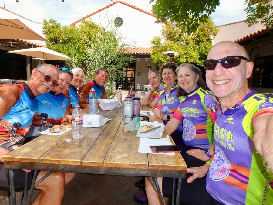 Later in the week, we increased the fun factor when we met up with Lonnie, Carol, Steve and Pam for a ride to the Estrella Bakery. Three couples did the short climb up the “A” mountain for the views. All of us enjoyed the baked goods.