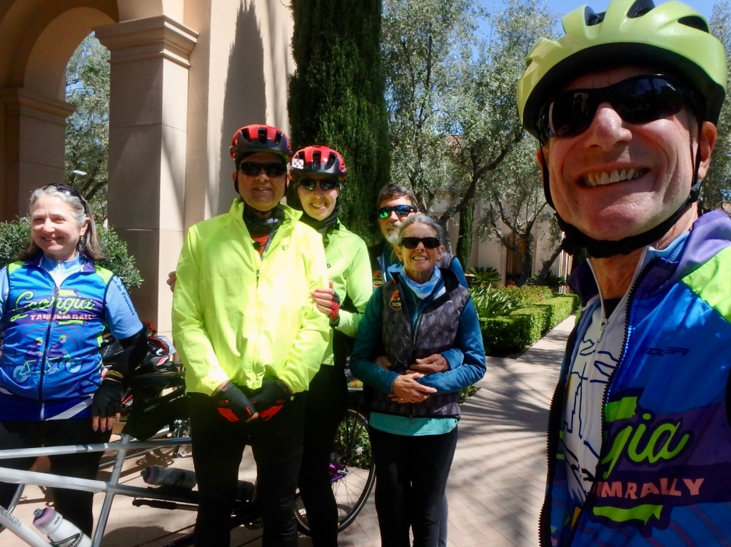 In our second SoCal stint, we did a ride every day because we knew we’d be off the bike for five days while in Phoenix and Joshua Tree. We had a short visit with Dennis and Kathy on the trail, and then had a longer visit during a three-tandem ride at week’s end.
