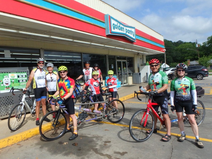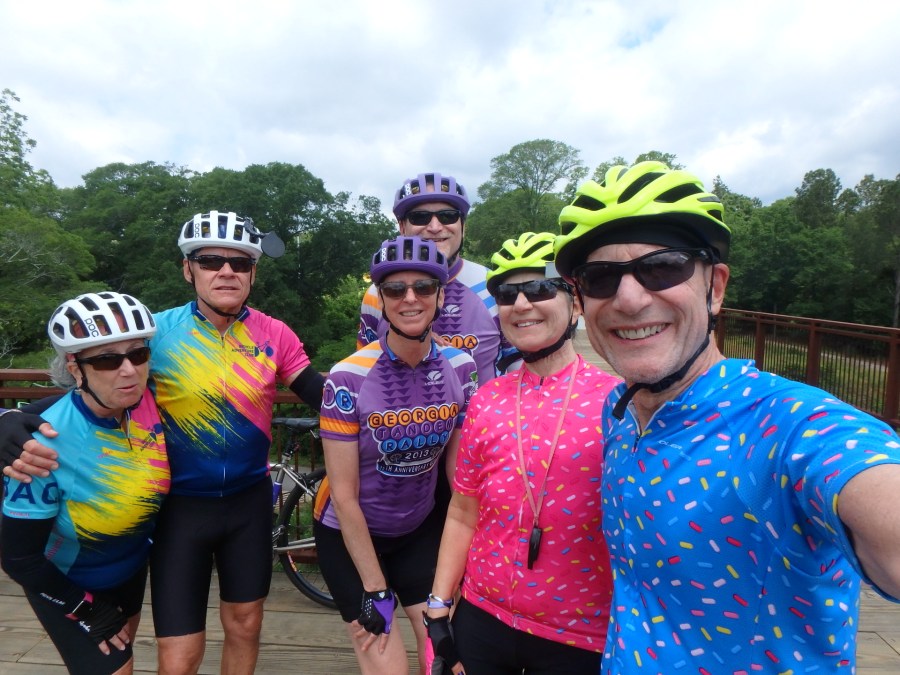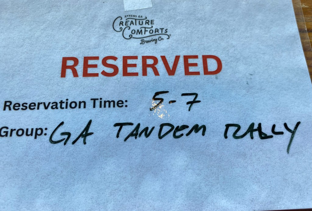 The highlight of Day 2’s ride was the Firefly trail. Some of you may recall the 20th Georgia Tandem Rally (held in Athens in 2018) when we cleaned out our attic of twenty years of leftover “extra” SWAG. We all put money in a donation jar and GTR donated money to the construction of this trail. It was a thrill to bring GTR riders back to Athens to enjoy the completed parts of the trail.