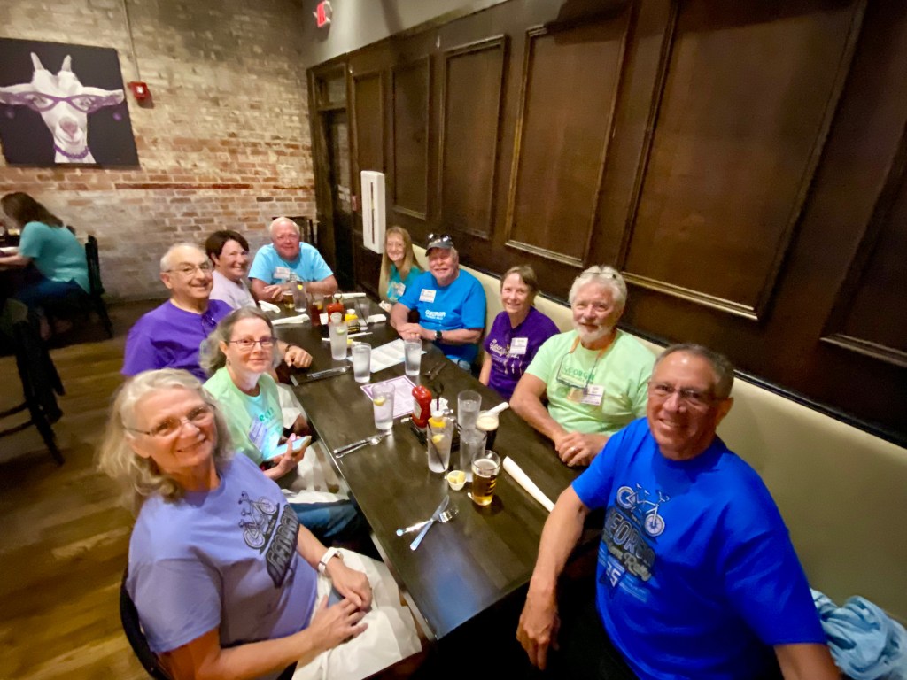 On Friday night everyone had dinner on their own – but a large group ended up at The Social Goat Tavern on the square. One group of note featured almost all of the people who had been at the first GTR in Madison, GA in 1999.