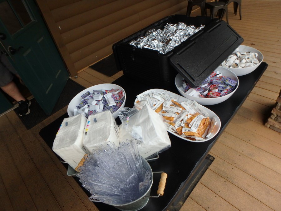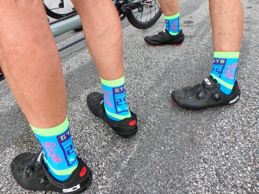 It’s the 25th GTR and possibly the very first time that a Saturday morning ride start was impacted by rain. It was a huge disappointment, but after studying the radar we had to call off the 8:30AM mass start and encourage those who planned to ride to start as early as they could (and ride the short option) to try and avoid the rain. 35 to 40 teams went early and most only got slightly damp in the mist. We were glad to see so many ride because we had a “Biscuit Break” planned at 16 miles.