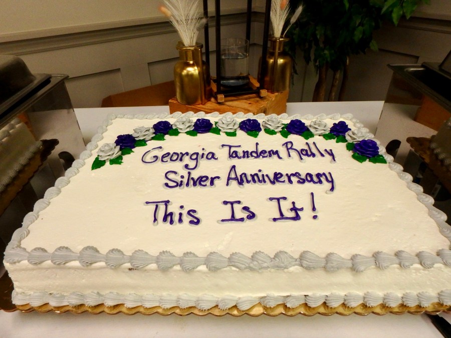 What can I say? It’s the end of an era and for us a very big relief to have put the Georgia Tandem Rally to bed. Since 1999 we have spent countless hours throughout the course of each year thinking about it, researching it, making phone calls, having meetings, making routes and maps and cue sheets (Roger), driving routes, marking routes (20 years), writing emails (all Roger). Now our time is our own and we are free to make travel plans whenever we please! Don’t get me wrong, it was a labor of love (mostly) and I’m sure we will miss it but right now we are celebrating going out on our own terms.