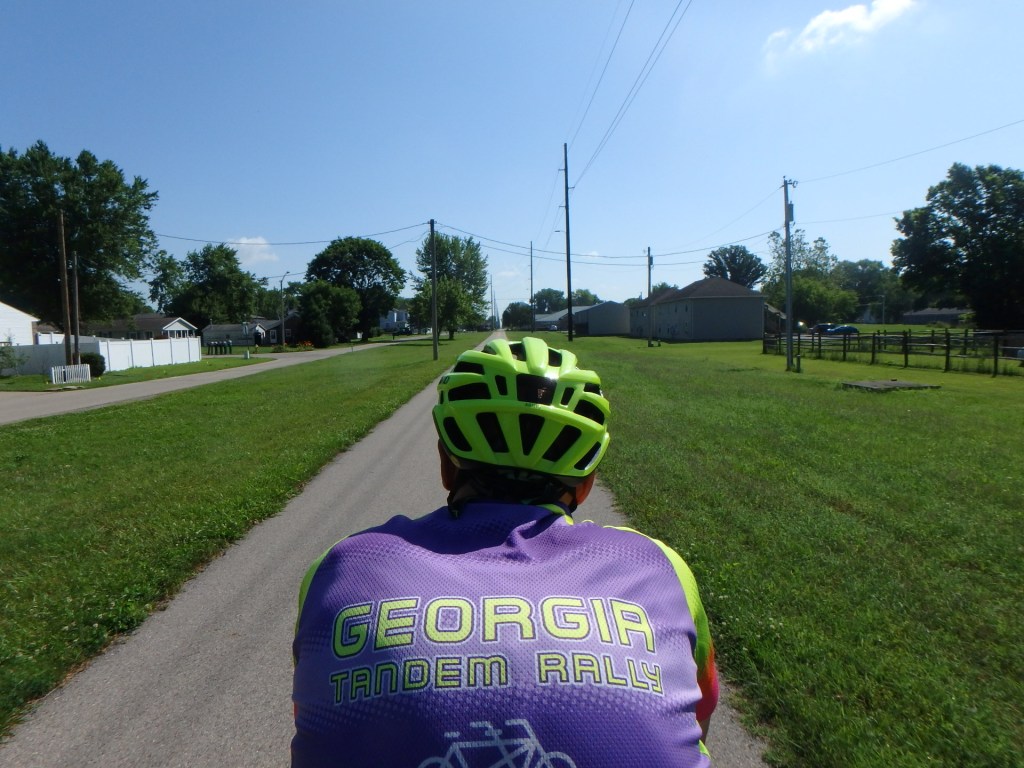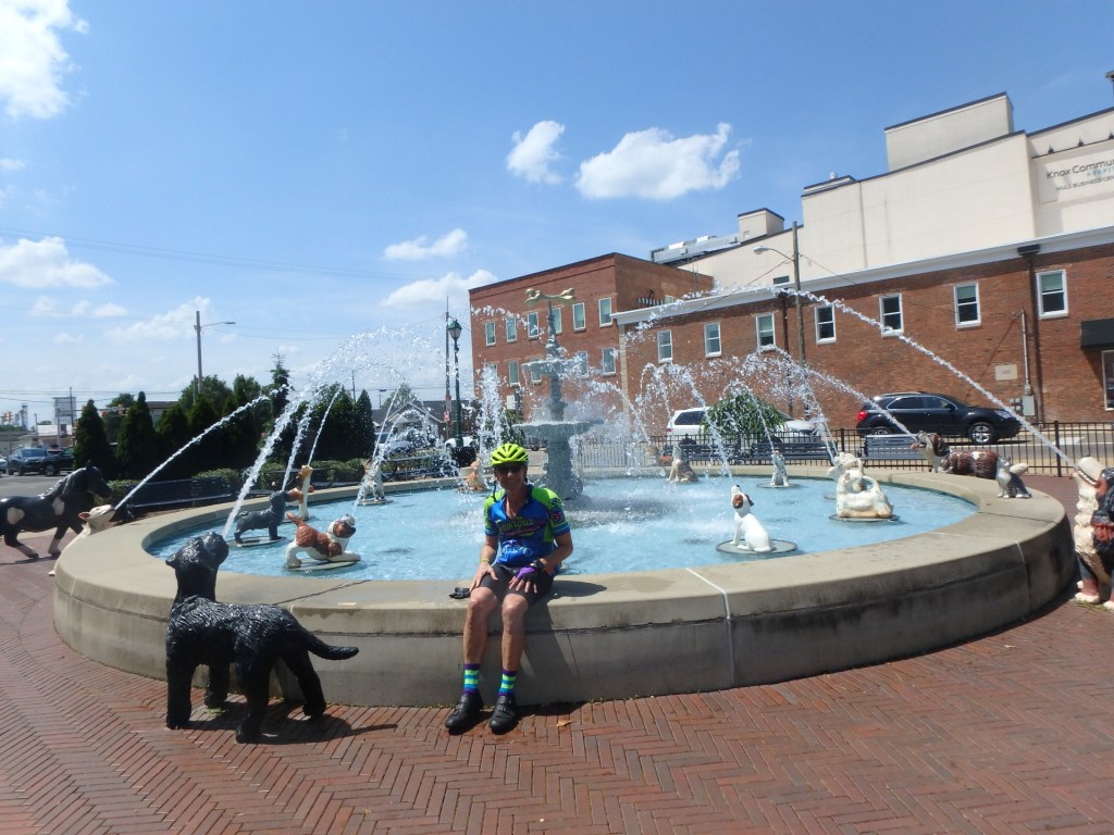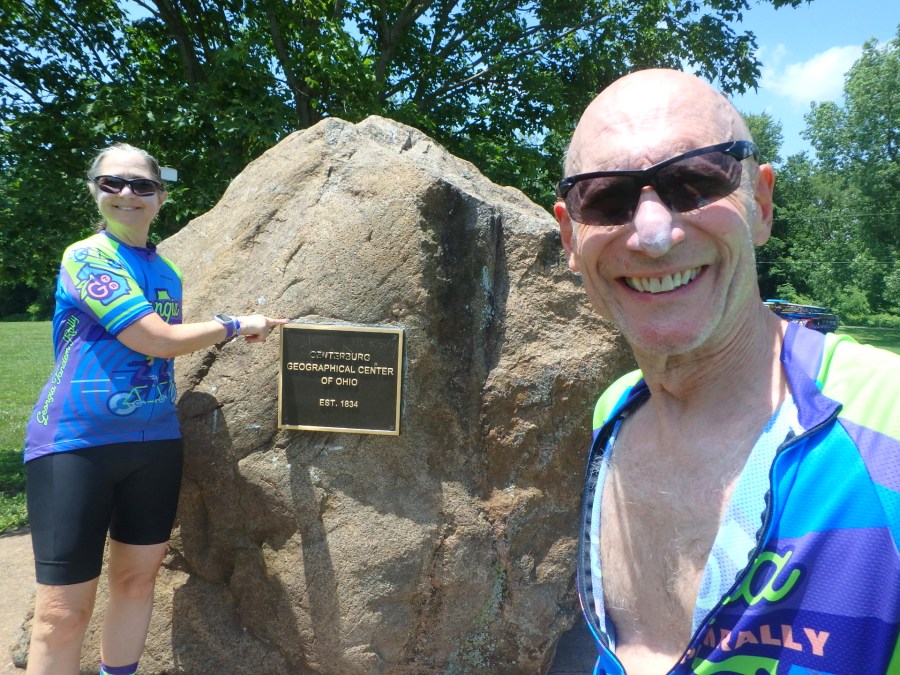 Day three had us ride out as a group for a photo at the state capitol. We started riding at around 9:30 when it was 85 degrees. My research tells me that the high temp for day three was 95 (which was just a few degrees below the all time record high for this date). Our destination for this day was 52 miles away in Mt. Vernon. On this ride we passed the midpoint of the trail, the geographical center of the Buckeye state and the highest point of elevation on the Heart Of Ohio Trail.