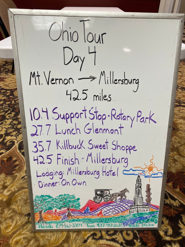 Millersburg to Akron was definitely the hardest ride of the week. There was a good bit of riding on the road through Amish Country where there are rolling hills – lots of up and down.