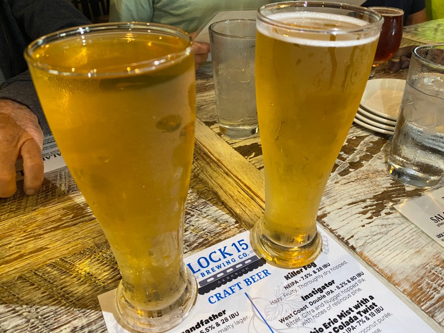 About five miles later, we were splitting a BLTA (Bacon, Lettuce, Tomato, Avocado) for lunch. Two miles later, we stored our bike in the Millersburg Hotel and made our way to the Millersburg Brewery for a little “rehydration”. Evidently, the rest of the group got drenched twice in their last 10 miles. We stayed dry, but at least it brought the temps down for the evening.