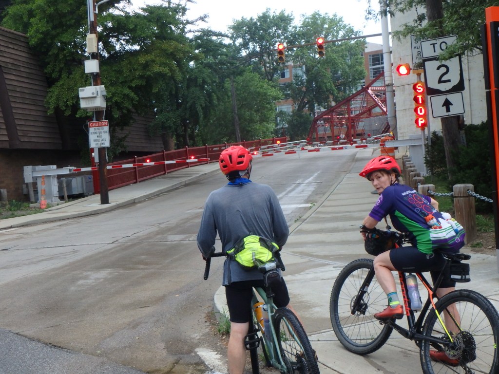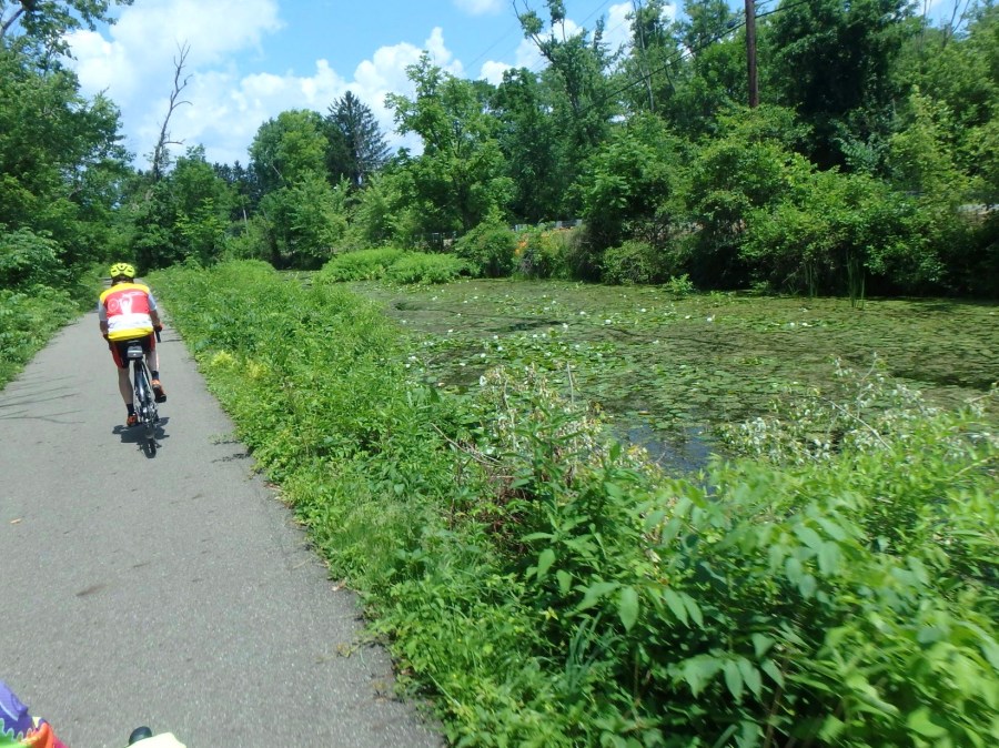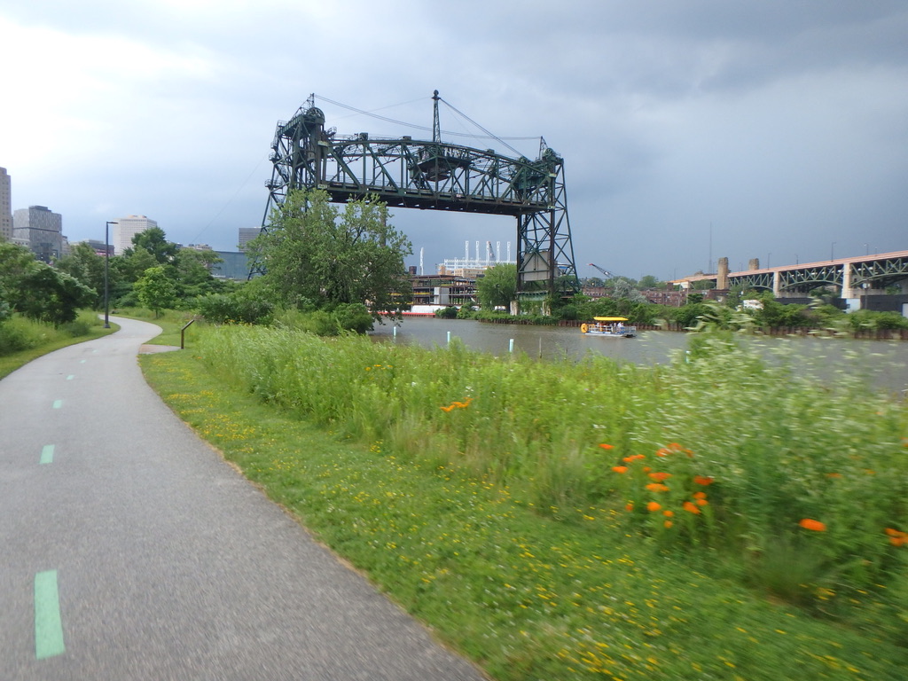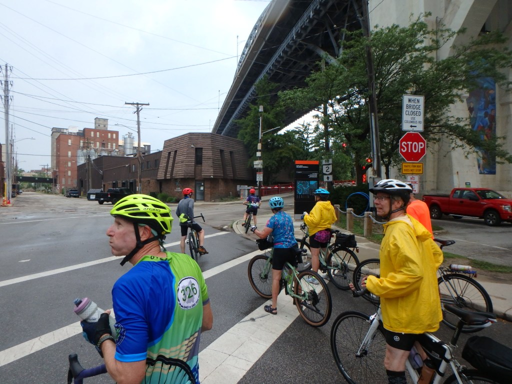 By the last day of riding, the heat dome had been vanquished by the rain and our approach to Lake Erie. When the ride started around 8:30am, it was a mere 75 degrees. Had we started a bit earlier we may have made it to the end of the road without getting drenched! We had 3 or 4 miles to go when the skies opened up. We took shelter under a bridge, and then enjoyed the much cooler temps as we finished up.