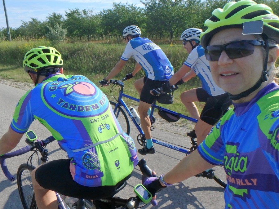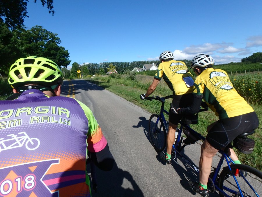 The summer road trip is an opportunity for us to get out of Hotlanta and ride in some cooler temps. The last few years we have tried to schedule it so that we end up at the Midwest Tandem Rally, which is traditionally over the Labor Day weekend. We spent the past week in beautiful Traverse City, Michigan, the cherry capital of the world. Sadly, we missed cherry season, but there are still plenty of cherry pies, turnovers and every other imaginable cherry flavored or themed product available for us. We picked up jam, bbq sauce, salsa and whiskey, just to name a few.
