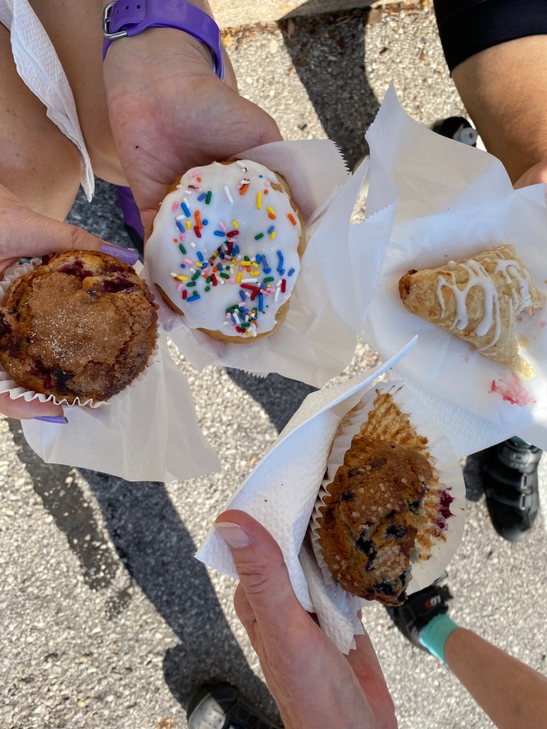 We were lucky enough to share a second ride with Linda and Eric. We rode on the Leelanau Trail which took us to a bakery for our rest stop – did someone say DONUTS?