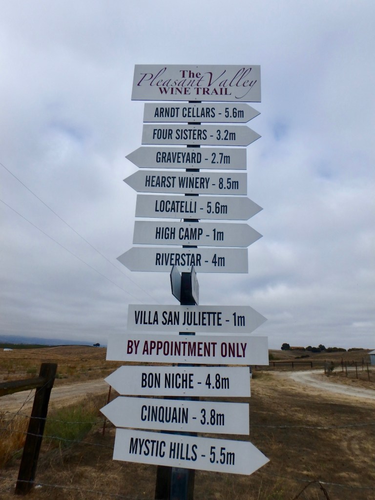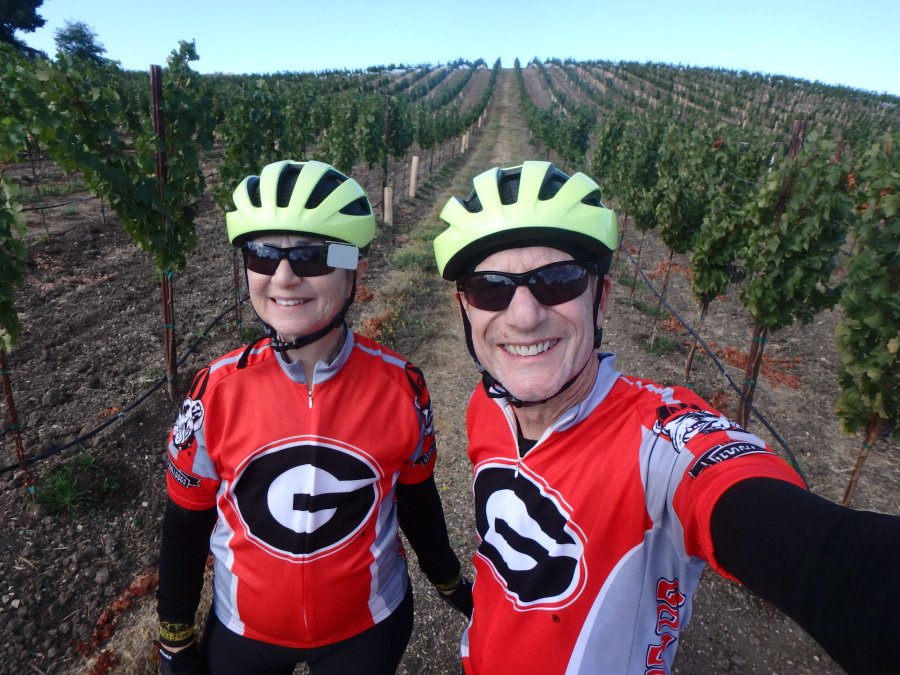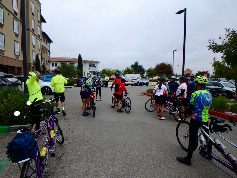 We spent four days riding in beautiful central California wine country. Although we were with a group called Southern California Tandem Riders with over twenty other couples participating, we spent most of the weekend and all but 15 miles riding by ourselves. Luckily, we really enjoy each other’s company! I’m not complaining…we were thrilled to ride in a new area and enjoyed all of the climbing opportunities presented. As the late, great Glenn Erickson taught us on many European adventures, if you don’t climb…you don’t get the views!